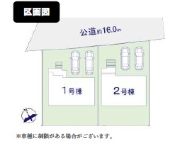 | 備考 | 1号棟:4198万円 敷地面積168.69㎡ 建物面積:106.16㎡ |