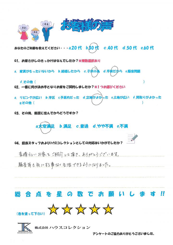 騒音等も気にする事なく生活できるようになりました!