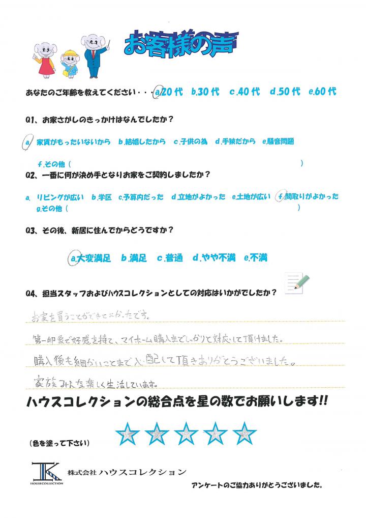 お家を買うことができてよかったです。