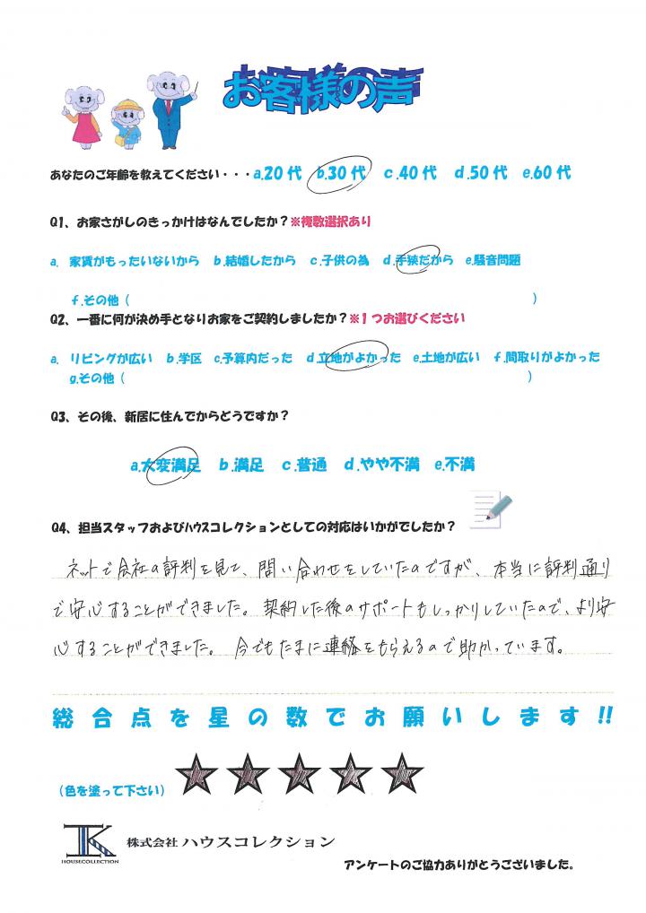 契約した後のサポートもしっかりしていたので、より安心することができました。今でもたまに連絡をもらえるので、助かっています。
