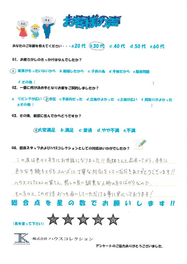 この度は色々と本当にお世話になりました!!髙畑さんと出会ってから、本当に色々な手続きとかもスムーズに丁寧な対応をして頂きありがとうございます!!
