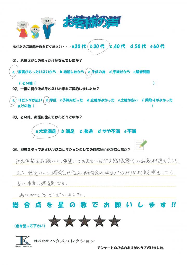 また、住宅ローン減税や住まい給付金の事まで分かりやすく説明をしてもらい本当に感謝です。