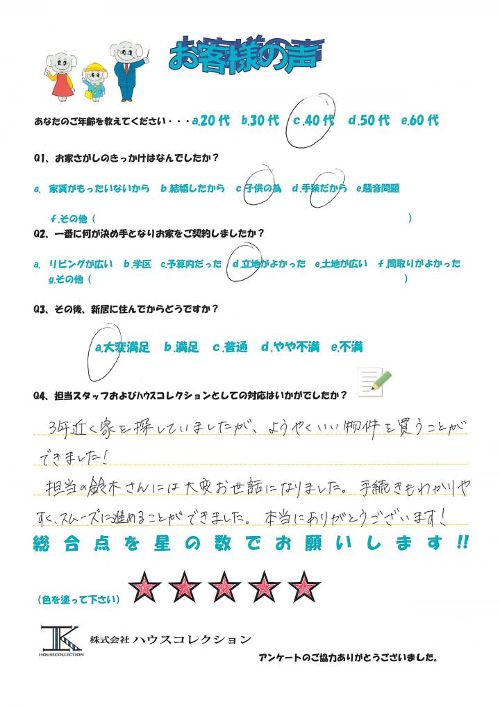 担当の鈴木さんには大変お世話になりました。手続きもわかりやすく、スムーズに進めることができました。