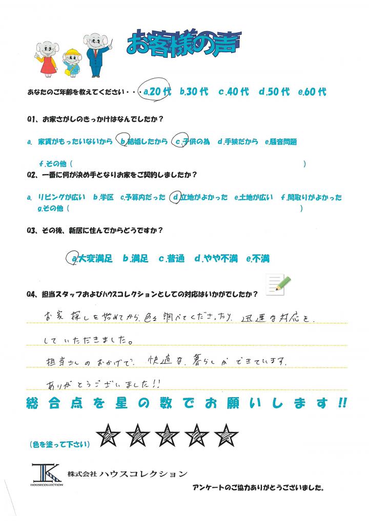 お家探しを始めてから、色々調べてくださったり迅速な対応をしていただきました。